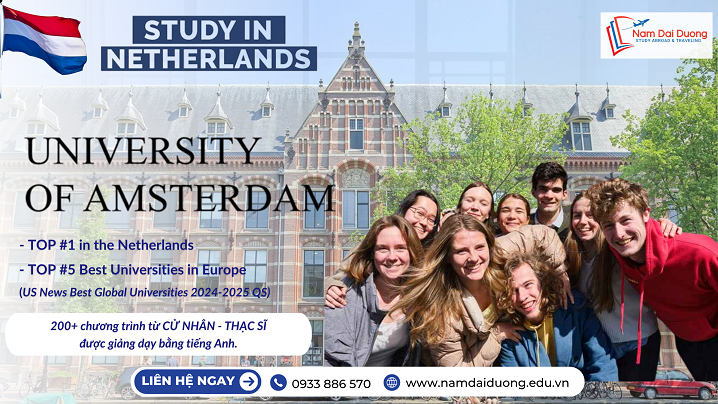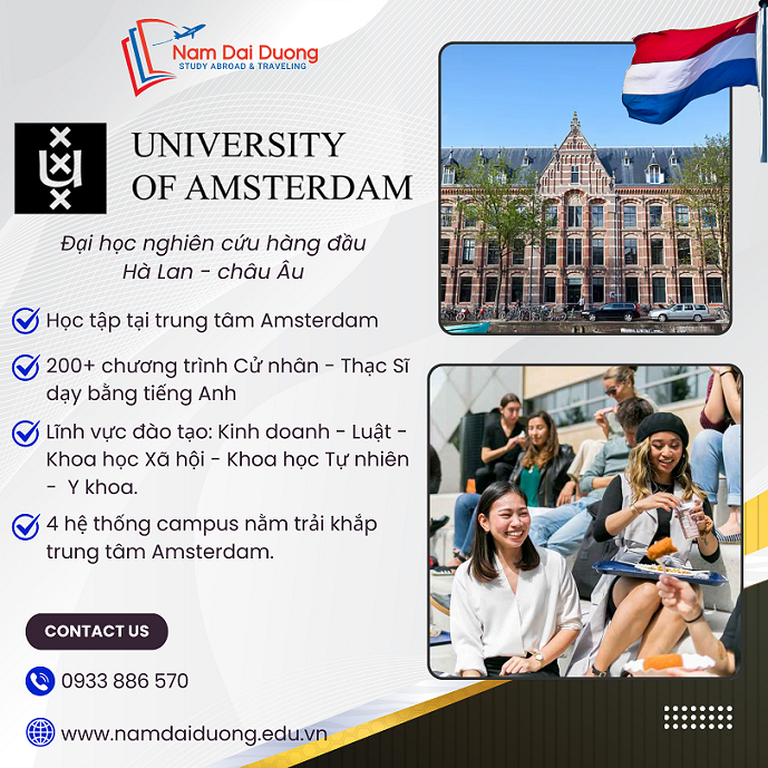 - Được thành lập năm 1632, University Of Amsterdam (UvA) là trường đại học nghiên cứu hàng đầu châu Âu, tọa lạc tại trung tâm thủ đô Amsterdam - trung tâm văn hóa - kinh doanh - sáng tạo sôi động của Châu Âu. Thành phố Amsterdam được xếp hàng #6 trên thế giới về Chất lượng Cuộc sống (Worldwide in Mercer's 2024 ‘Quality of Living Survey’), được xếp hạng #2 tại Europe về Chỉ số thành phố An Toàn (The Economist’s Safe Cities Index 2021).