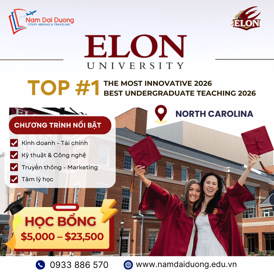 Hãy đến học tập tại Elon University để viết nên chương mới của tương lai – nơi tri thức và cơ hội để bạn vươn tầm thế giới.