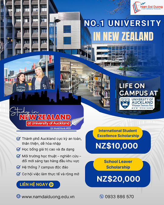 ** Thông tin tư vấn về trường du học New Zealand – học bổng du học New Zealand – thủ tục xin visa du học New Zealand, liên hệ cùng Nam Đại Dương, sẽ luôn đồng hành cùng bạn và hỗ trợ hoàn tất thủ tục nhập học, các bạn sẽ tự tin mở cánh cửa vào các trường chất lượng tại New Zealand.