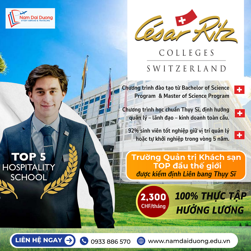 Khởi đầu hành trình du học Thuy Sĩ tại César Ritz Colleges Switzerland ngay từ hôm nay để tiếp cận với ngành học HOT cùng thực tập hưởng lương và một bằng cấp chuẩn quốc tế!