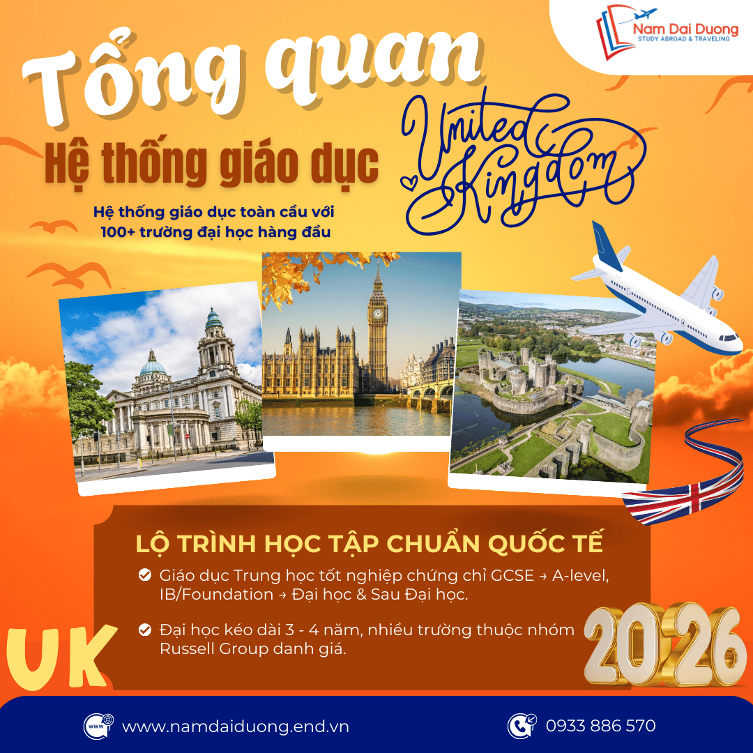 + Du học chương trình GCSE, A-level, Foundation, Đại học hay Sau đại học tại Anh Quốc đều cần một lộ trình rõ ràng, linh hoạt và phù hợp với từng mục tiêu cá nhân. Từ các trường thuộc Russell Group danh giá đến các trường Cao đẳng, Đại học hàng đầu, sinh viên quốc tế đều sẽ được tiếp cận môi trường học thuật đẳng cấp, định hướng nghề nghiệp rõ ràng và cơ hội trải nghiệm văn hoá phong phú.