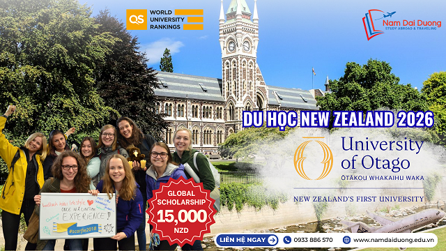 - Học bổng University of Otago Global Scholarship giá trị 15,000 NZD dành cho sinh viên quốc tế bắt đầu Bậc cử nhân.