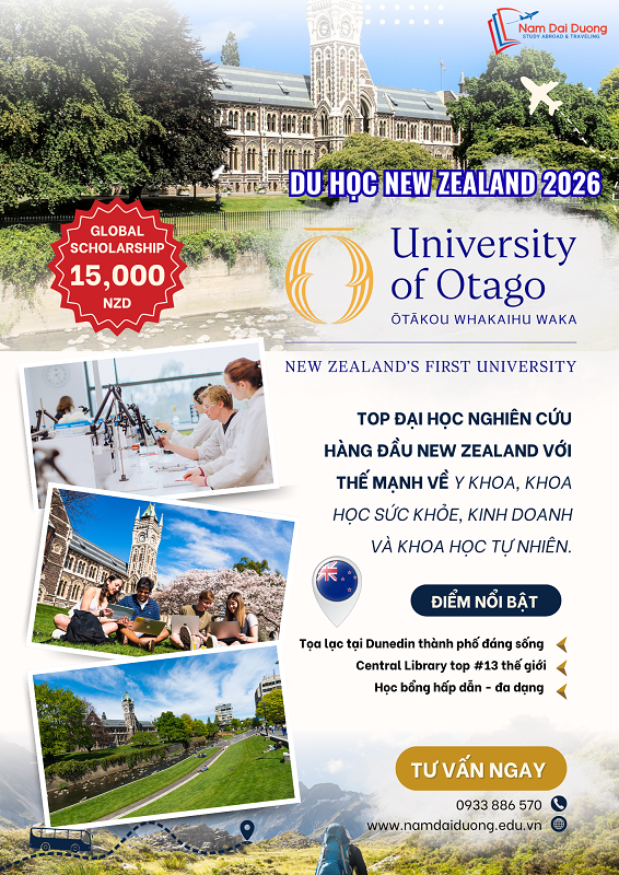 - Cùng với hệ thống học bổng đa dạng, dịch vụ hỗ trợ sinh viên toàn diện và tỷ lệ việc làm cao, Post-study Work Visa sau khi ra trường càng khẳng định vị thế của Otago là điểm đến du học 2026 đáng cân nhắc hàng đầu.