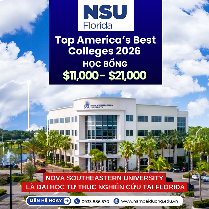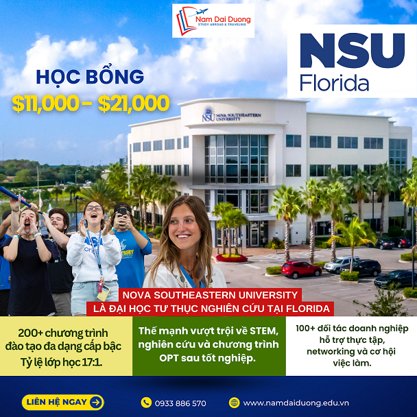 - Hãy lựa chọn Nova Southeastern University là hành trình du học của bạn ngay hôm nay ! Với vị thế là trường ại học nghiên cứu tư thục tại Florida, được công nhận chuẩn R1 – nhóm các trường có hoạt động nghiên cứu cao nhất Hoa Kỳ, cùng hệ thống đào tạo đa ngành mạnh về Y khoa, STEM, Kinh doanh và Luật.